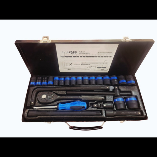 یک ست آچار بکس 25 تکه 1/2 اینچ کروم-وانادیوم با نام تجاری "Rdw Germany" و مدل "Blue-Ribbon" .
